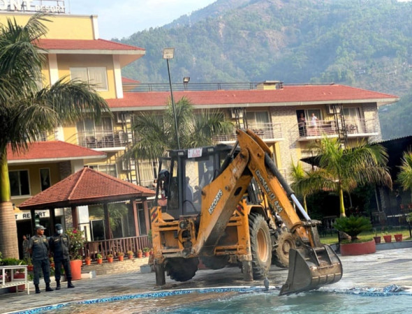 फेवाताल सिमाभित्र बनेको अवैध संरचनामाथि चलायो पोखरा महानगरले डोजर