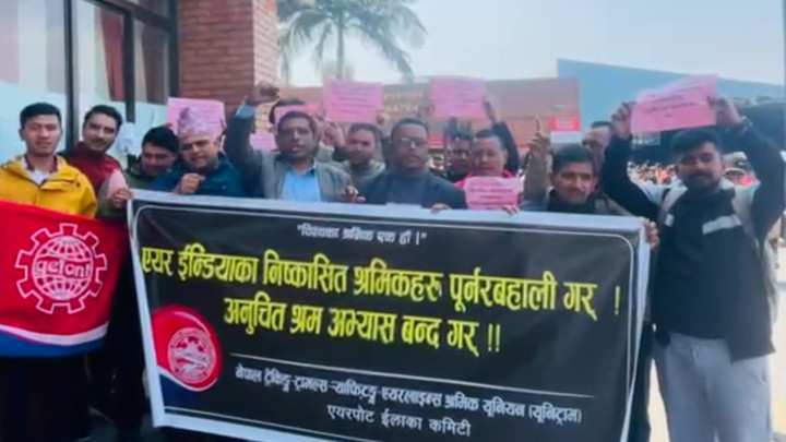 निष्कासित श्रमिक पुनःबहालीको माग गर्दै युनिट्राभद्वारा एयर इण्डिया अगाडि प्रदर्शन